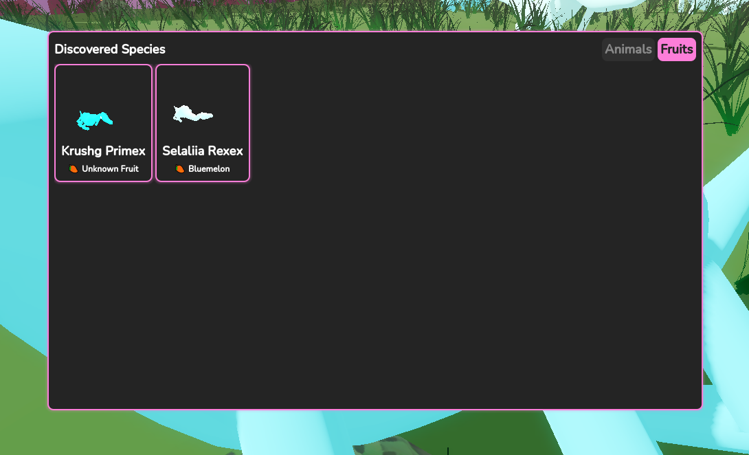 1. Use your scanner to identify procedural species. Find their favorite fruit and feed them until they trust you. Once tamed, they are stored in your Logbook (Q).