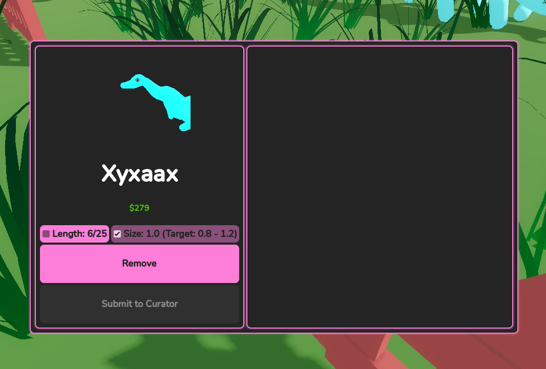 4. Check the Request UI. When your creature matches the cryptic requirements (e.g., "The Ruby Needle: Needs Red, 20+ Length"), hit Submit to beam them up and get paid.